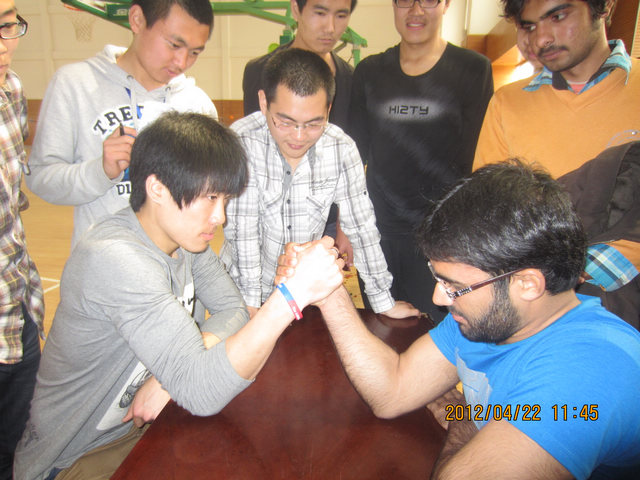 此次挑战赛分上半场和下半场两场。上半场有踢毽子、吹气球、转呼啦圈、俯卧撑、穿针引线、仰卧起坐、低姿过杆;下半场有跳绳、助跑摸高、扳手腕、单词记忆、数字记忆等集娱乐、趣味于一体的不同比赛项目。文体馆站满了前来参加比赛的同学,火热青春的拉拉操和悠扬动听的歌曲拉开比赛的序幕。参赛者由专门的负责人带领到相应的比赛场地参加比赛。各项比赛开始后,现场气氛紧张热烈,选手们奋力拼搏,敢于挑战自我、挑战极限,尽显当代大学生之风采。精彩的比赛镜头总是扣人心弦,挑战吉尼斯最高纪录的时刻总是激动人心,参赛者情绪高涨,热情洋溢,掌声不断,欢呼呐喊声连连。整个文体馆充溢着运动的欢乐。经过参赛选手们激烈的竞争角逐和裁判员的公正评判,各个项目的冠亚季军各有所属。11点左右首届“校园吉尼斯大赛”圆满的画上了句号。