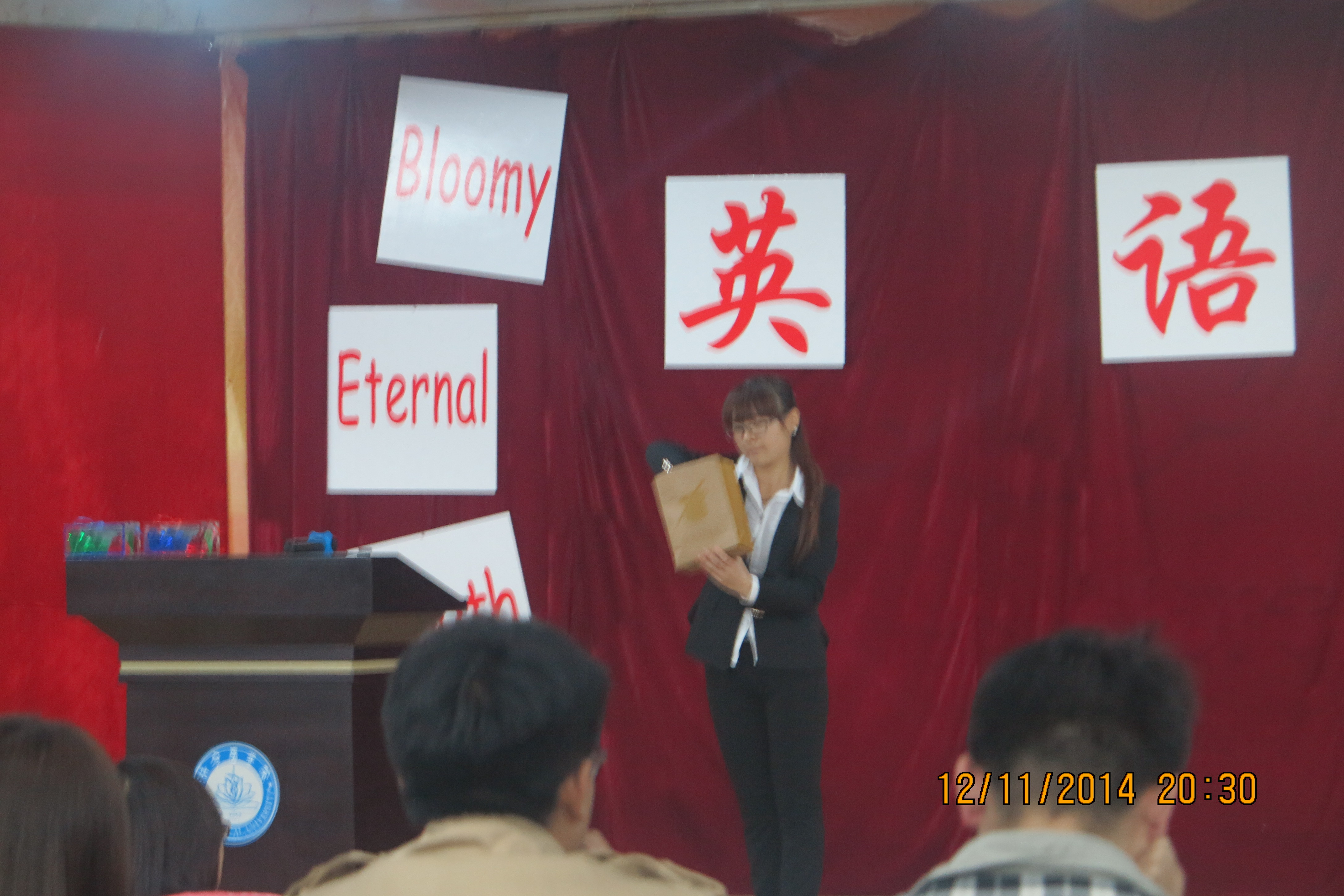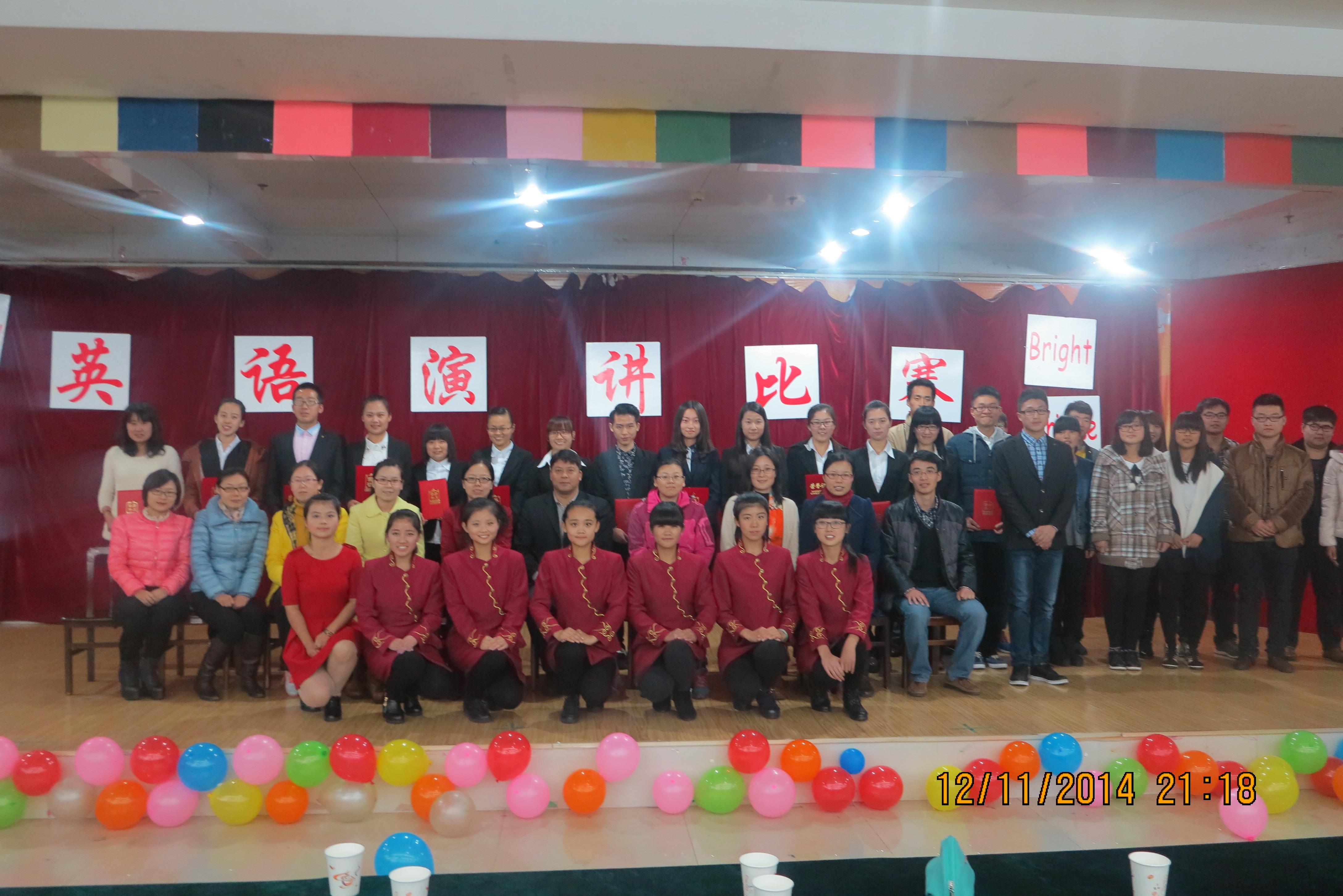 20141111晚七点,由团委主办外语系团总支学生会承办的 “青春无极限,炫彩中国梦英语演讲比赛在一楼多功能厅隆重举行。学生处副处长卫明武老师外语系副主任陈培君老师以及团委各二级学院团总支老师出席了本次活动。