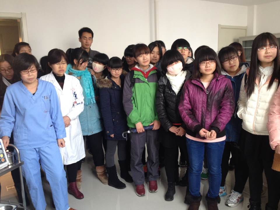 12月11日,2014级外国语学院学生在到日照人民医院进行急救知识实训。外国语学院副院长朱敏老师、学生管理科科长杜现娟老师、教务处考务科科长张倩老师带队前往。