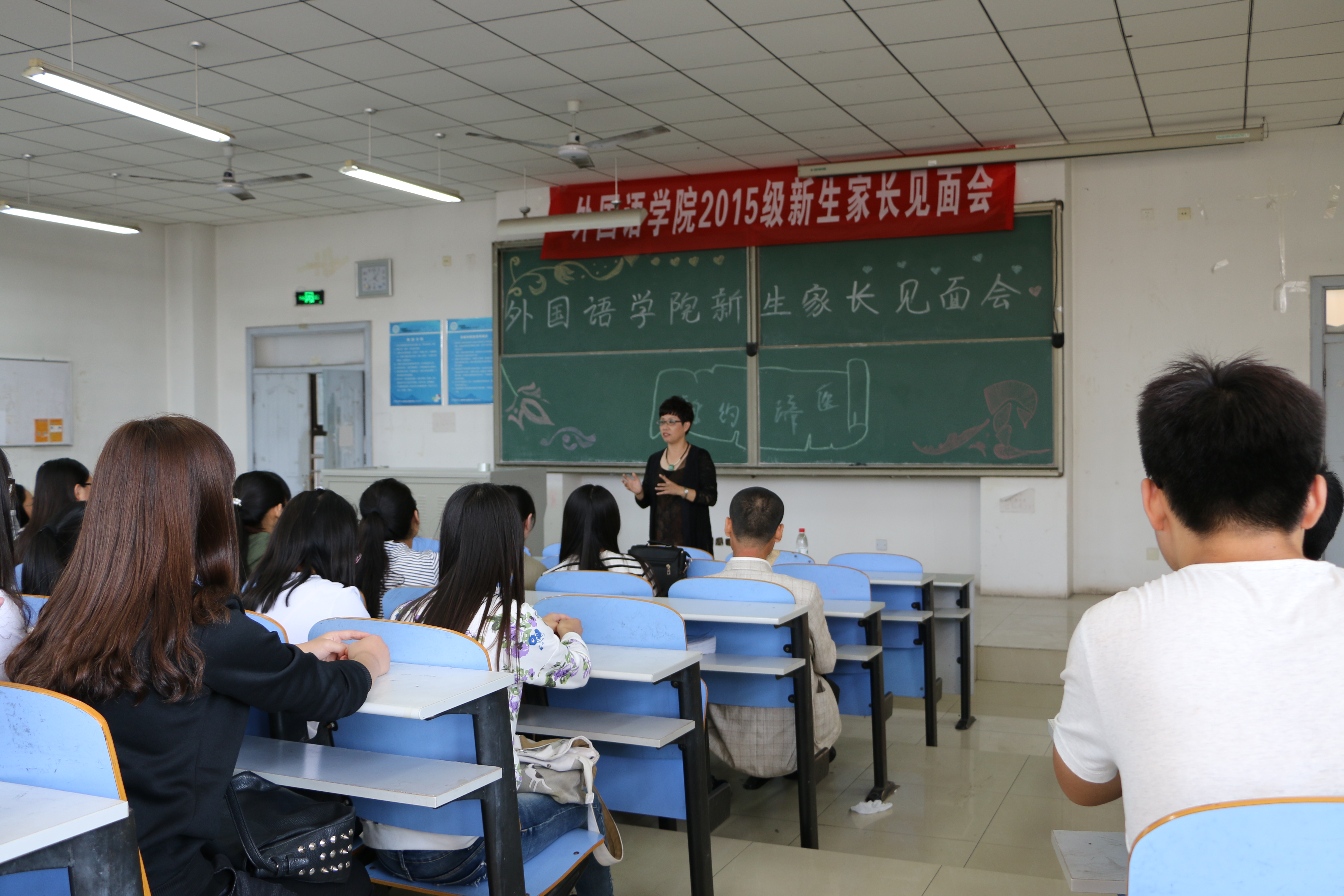 12日下午4点,副院长陈培君在C205教室主持新生家长见面会。陈培君首先代表外国语学院全体师生向新同学表示诚挚祝贺和热烈欢迎,向新生家长表示感谢,并就学校、学院的发展概况、师资情况、专业特色、管理规定和发展前景等作了介绍。通过家长见面会,新生家长对我校以及我院的基本情况、专业特色、校纪学风等有了更深入的了解。他们表示,今后一定会多与学生和学校沟通,关注学生成长,共同将孩子培养成德才兼备和社会需要的人才。
