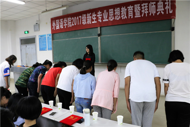 为增强2017级新生对英语专业的认识和理解,尽快适应大学生活和学习,外国语学院于9月13日举行2017级新生专业思想教育暨拜师典礼。外国语学院副院长陈培君、全体教师和2017级新生参加活动。