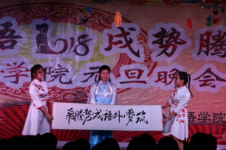 一年一度的元旦晚会不仅给同学们带来了欢乐,也增强了师生的凝聚力,显现了外国语学院朝气蓬勃的青春活力。最后希望老师工作顺利,同学们学习进步,新的一年外国语学院更美好。