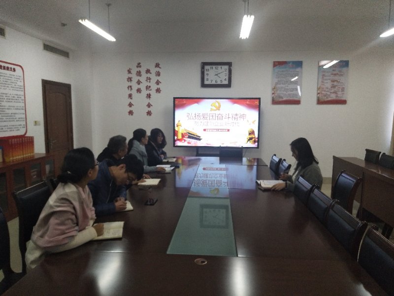 各支部分别召开党员大会,学习了中组部、中宣部《关于在广大知识分子中深入开展“弘扬爱国奋斗精神、建功立业新时代”活动的通知》,习近平总书记谈“爱国”经典语录以及习近平对新时代知识分子的殷切寄望,并组织观看了《黄大年:生命,为祖国澎湃》《“两弹一星”功勋科学家-人民科学家钱学森》。