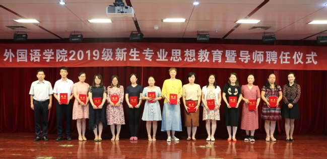 为了增强2019级新生对英语专业的理解和认识,使学生尽快适应大学生活和学习,外国语学院于9月8日下午在二楼报告厅隆重举行2019级新生专业思想教育暨导师聘任仪式。外国语学院党总支书记张秋生、副院长朱敏、全体导师、各科室负责人、2019级全体同学参加了活动。