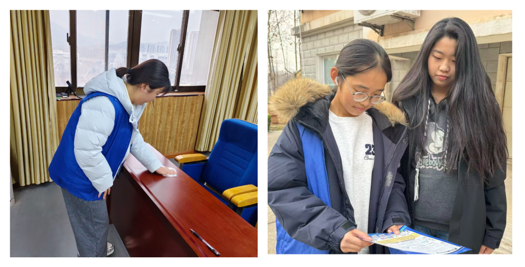 立足校园、服务同学,学院以务实举措推动雷锋精神落地生根。3月16日,“青春捡跑践使命,志愿服务美校园”绿色校园志愿服务活动如期开展,志愿者们身着志愿服装,手持清洁工具,对校园内的杂草、散落纸张、塑料瓶等垃圾进行全面清理,不放过任何卫生死角,用双手守护校园洁净。3月17日,学院持续深化志愿服务品牌,开展“净语空间,志愿先行”语音室清扫活动第二十七期,志愿者们分工明确、协作高效,对教学楼三楼、四楼语音室及12楼教室开展标准化深度保洁,细致完成设备除尘、桌椅规整、地面清扫、垃圾分类等全流程任务,用汗水换来窗明几净的教学环境,为同学们的学习生活保驾护航。志愿者们忙碌的身影,成为校园里最动人的风景线,充分彰显了外院学子服务同学、担当奉献的青春风貌。